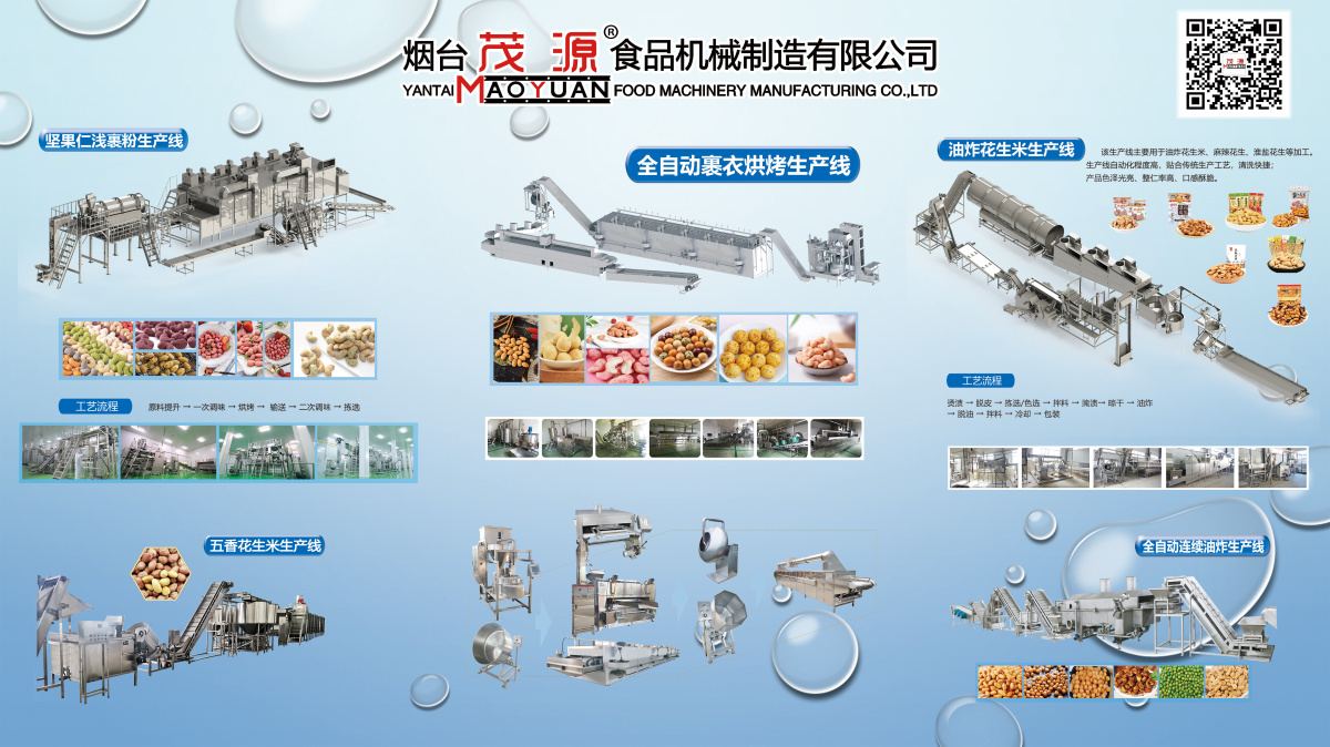 煙臺茂源食品機械制造有限公司成立于1995年,是集自主研發、專業制造、廠家直銷、售后服務于一體的食品機械制造企業,國家高新技術企業、3A誠信示范單位、山東省守合同重信用公示企業、中國食品工業協會堅果炒貨專業委員會常務理事單位,公司長期致力于油炸、烘烤、脫皮、裹衣等多種工藝性設備及自動生產線的研發創新,擁有多項新型實用專利。