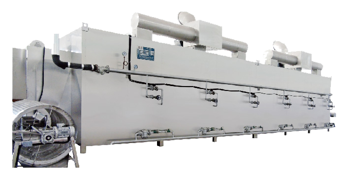 適用于堅果、果蔬類等顆粒狀、條狀、片狀等物料的低溫烘烤干燥。烘烤過程物料厚度、行進速度自動可調,連續進出;烘烤溫度單元式控制,可實現各單元溫度獨立調整;提高了工藝適用性及產品質量。